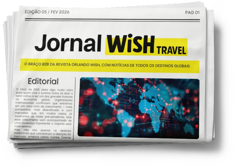 O Jornal Wish Travel nasceu como uma evolução editorial da Orlando Wish para o universo profissional do turismo. A proposta é ampliar o olhar para além dos destinos, reunindo notícias, análises, dados, movimentos do mercado e oportunidades que ajudam agentes, operadoras, hotéis, companhias aéreas e demais profissionais a tomarem decisões mais estratégicas.